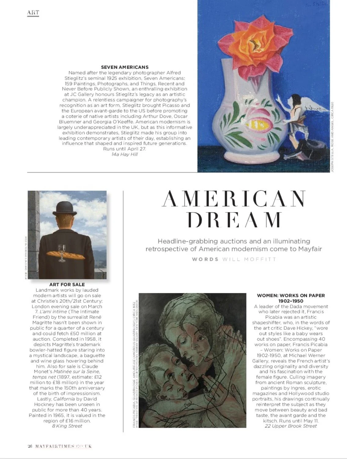 JC Gallery has announced a new exhibition focusing on the ground-breaking artists that ignited the American Modernism movement with a selection of rarely-seen works on view from 22 January until 27 April 2024 in its Mayfair London space. Curated by James Ward, Founder of JC Gallery, James Ward Presents: Seven Americans will feature nine detailed and soulful artworks by Oscar Bluemner, Arthur B. Carles, Charles Demuth, Arthur Dove, John Marin and Joseph Stella, including a feature focusing on Alfred Stieglitz. The exhibition marks the first time the works have been shown together in Europe.